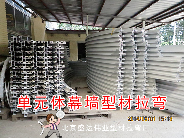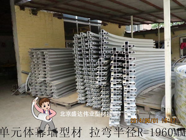 北京盛達偉業型材拉彎廠經過數十次的工裝設計及模具改造,成功將單元體幕墻型材拉彎成型,而且將拉彎半徑縮小到2米以內。經我廠拉彎完成的項目有: