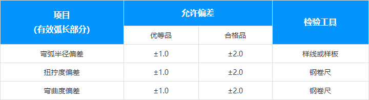 型材彎弧允許偏差: